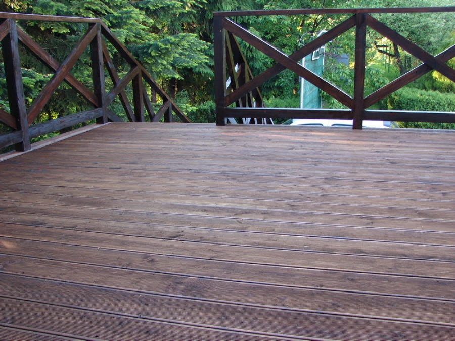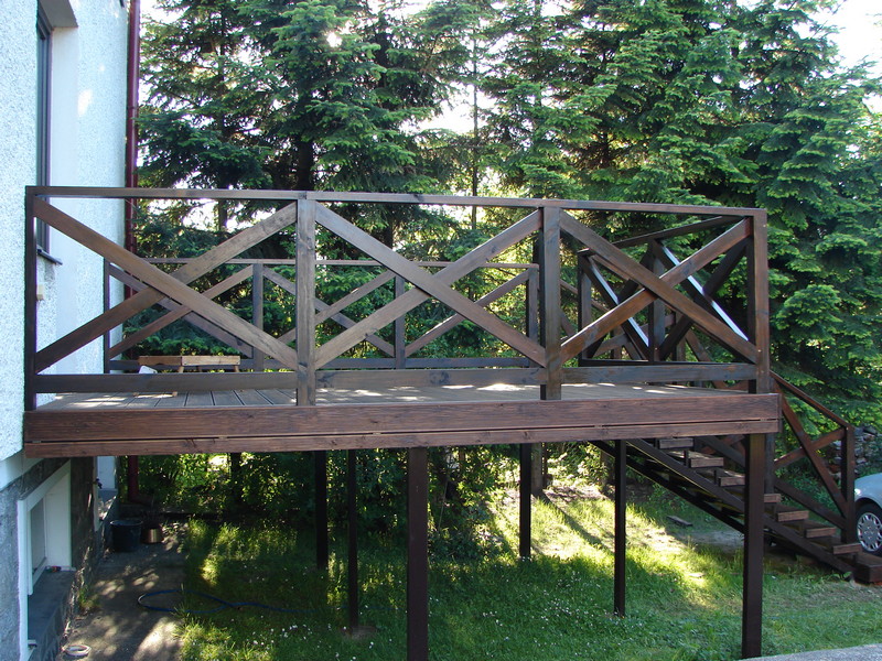 TOMASZÓW LUBELSKI - TARAS MODRZEW SYBERYJSKI + BALUSTRADA SOSNA KOLOR PALISANDER
